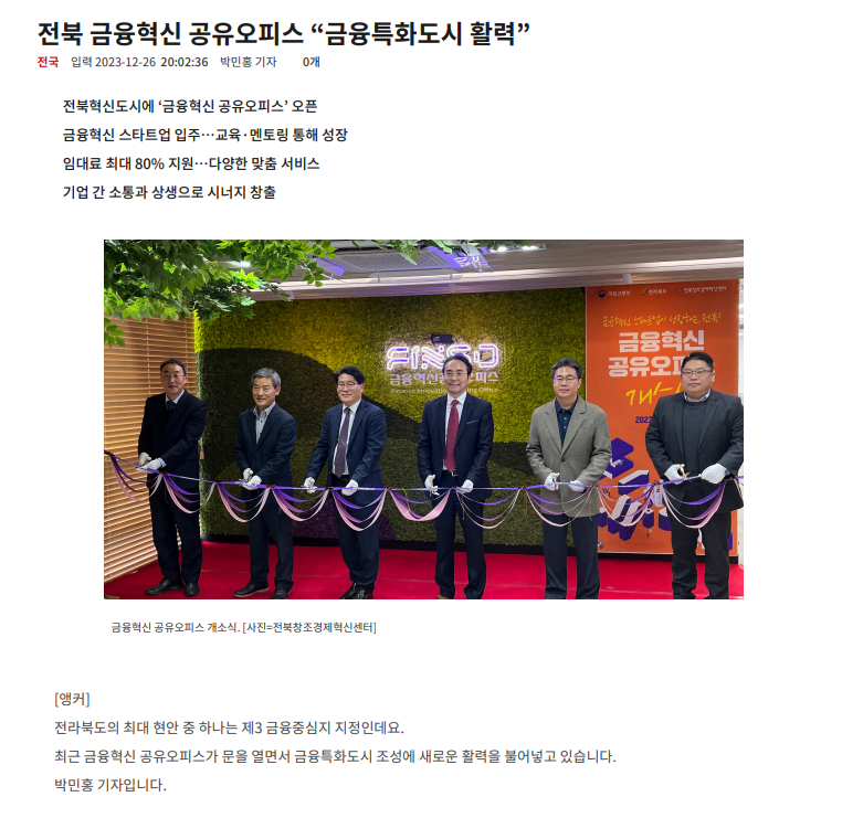 [서울경제TV] 전북 금융혁신 공유오피스 “금융특화도시 활력”(2023.12.26.)
